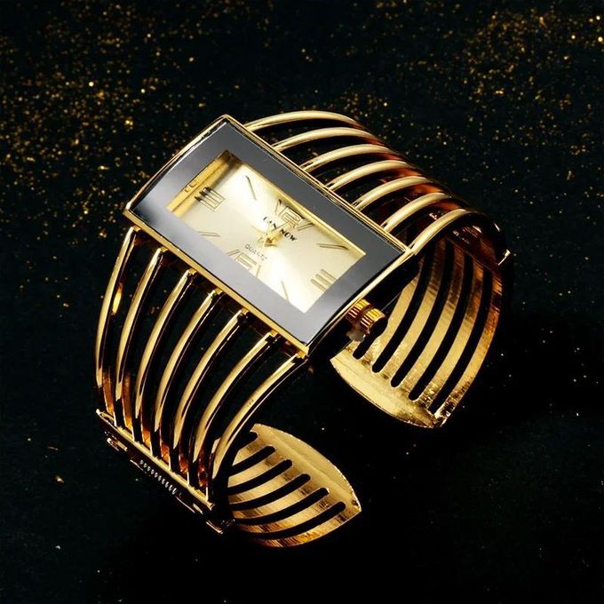 Montre à quartz squelettée de luxe pour femmes avec bracelet – Or